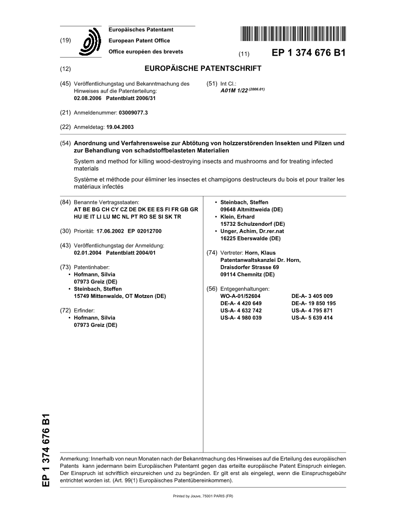 Mikrowellenverfahren wurde durch uns entwickelt und 2004 unter der Nr.: EP 1374676B1 beim Europäischen Patentamt patentiert.